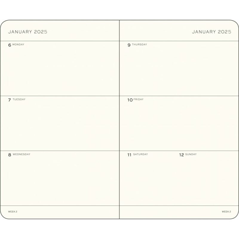 Kemény borítós, heti beosztású határidőnapló.