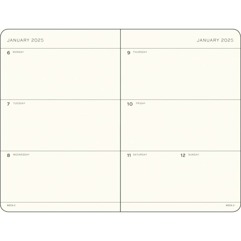 Puha borítós, heti beosztású határidőnapló.